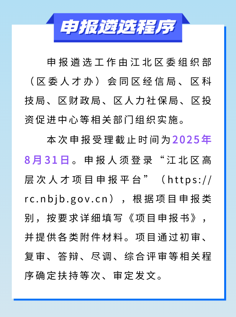 最新!2025年宁波市江北区“智创将来 才聚北岸”项目公告来了
